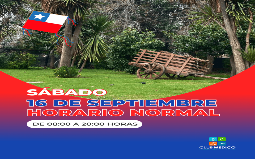 Estimados socios, A continuación les informamos de nuestros horarios de funcionamiento durante este fin de semana de celebración de fiestas patrias que se avecina. El día sábado 16 de septiembre el club funcionará de 08:00 a 20:00 horas. El domingo 17 de septiembre con horario reducido de 10:00 a 18:00 horas. Para el día unes […]